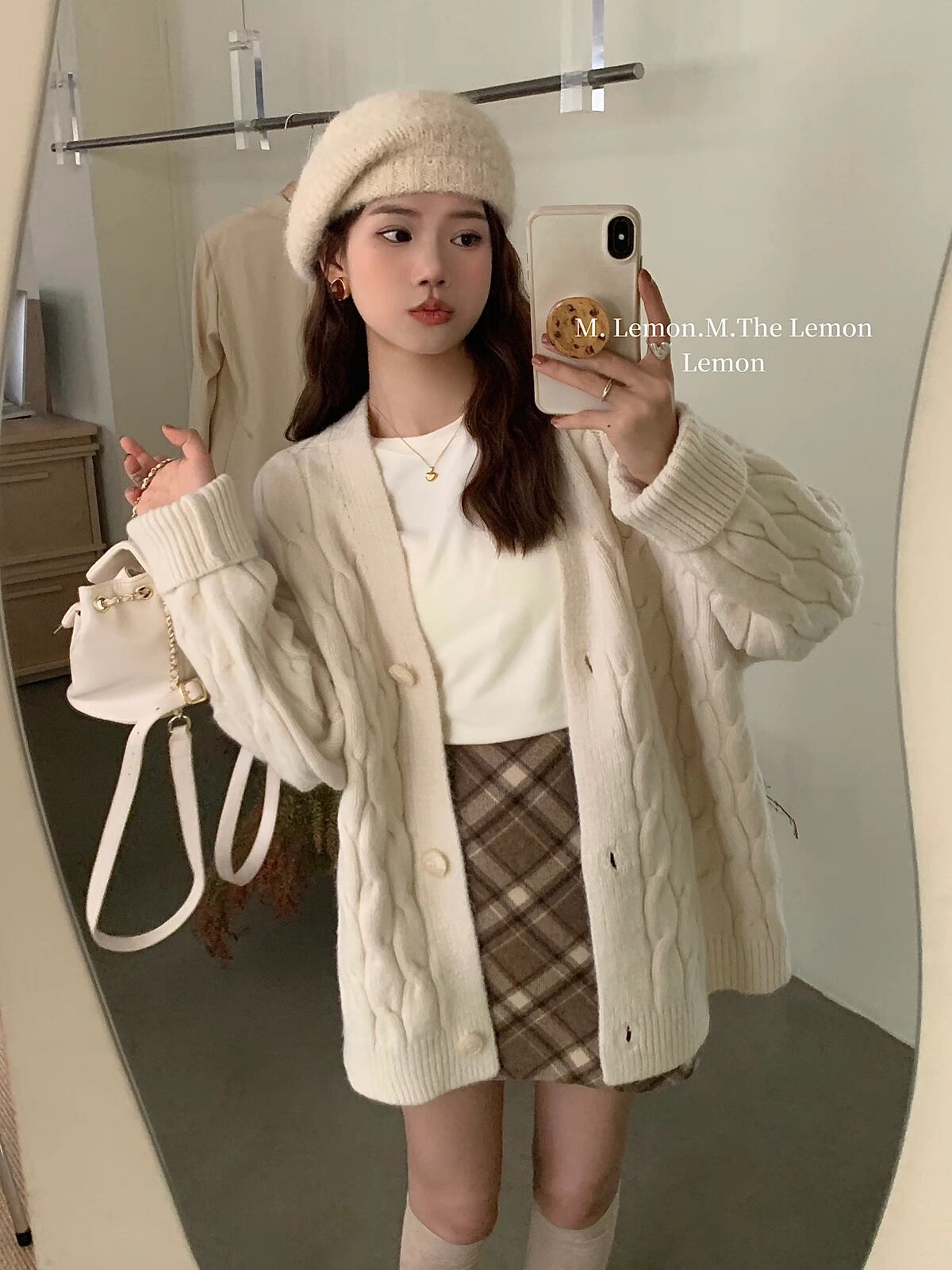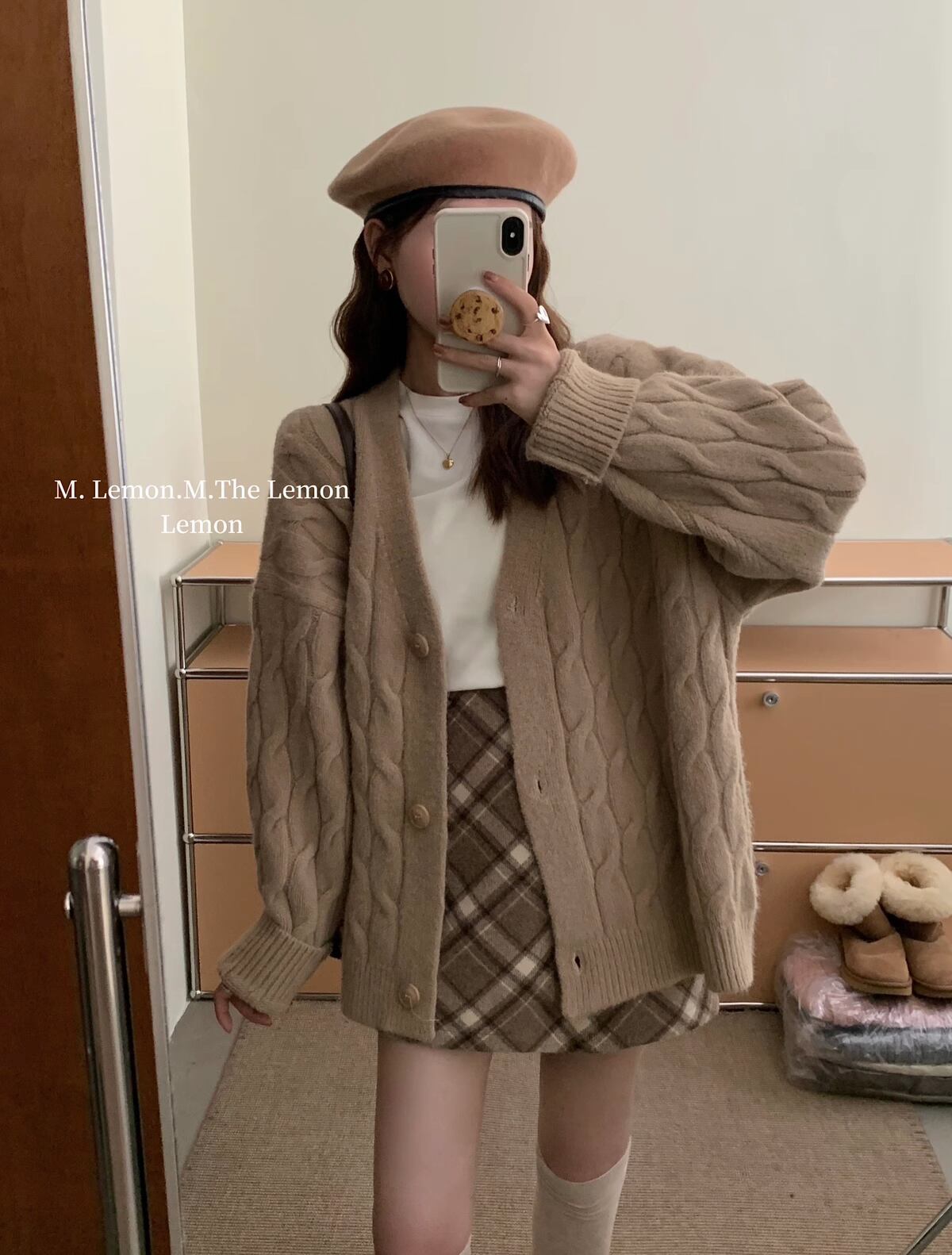 «ふんわりケーブル編みカーディガンで楽しむ優雅なコーディネート»
