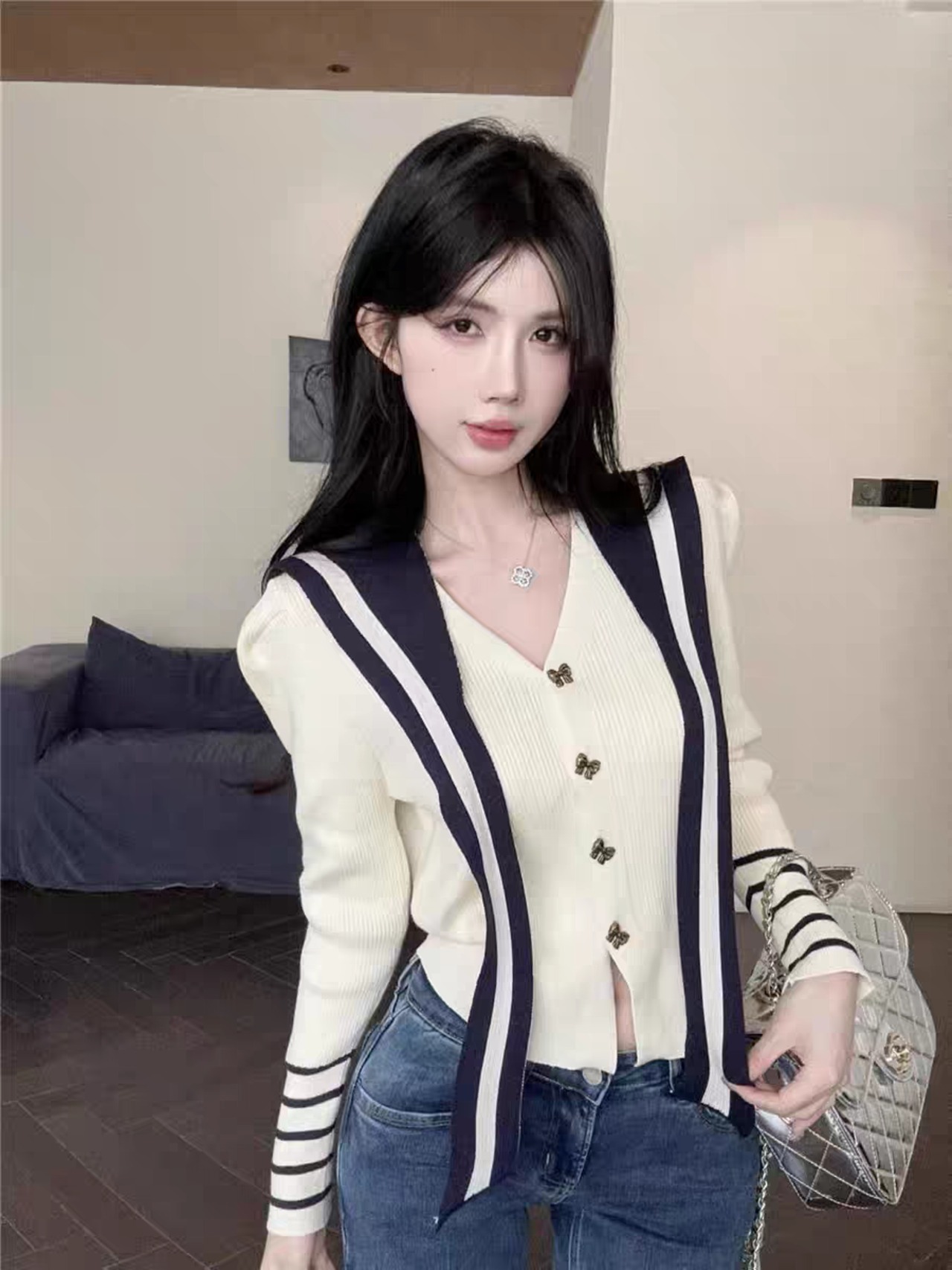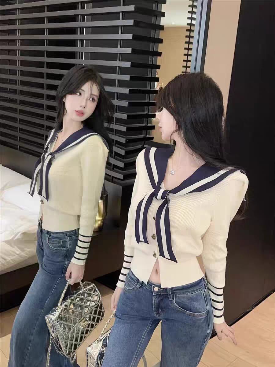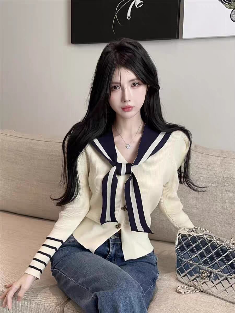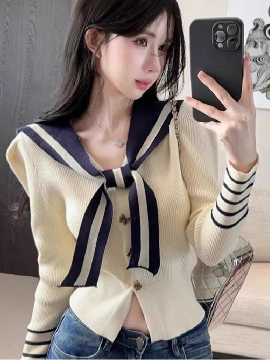 <明るいマリンボーダー柄が特徴のセーター♡心地よい素材感で、軽やかな着用感が嬉しいポイント!カジュアルなデザインは、デイリーコーデを一層引き立ててくれます。海辺の風を感じたくなるような爽やかさをテーマにした一着です♡>