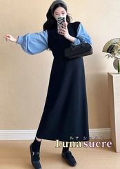 <おしゃれなレイヤーデザインが特徴のマタニティーワンピース♡ゆったりとしたシルエットが体型を優しくカバーし、快適に着用できます。柔らかな素材感が心地よく、妊婦さんにぴったりの一枚✨>