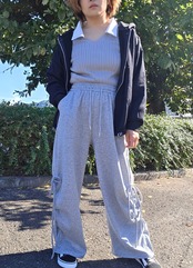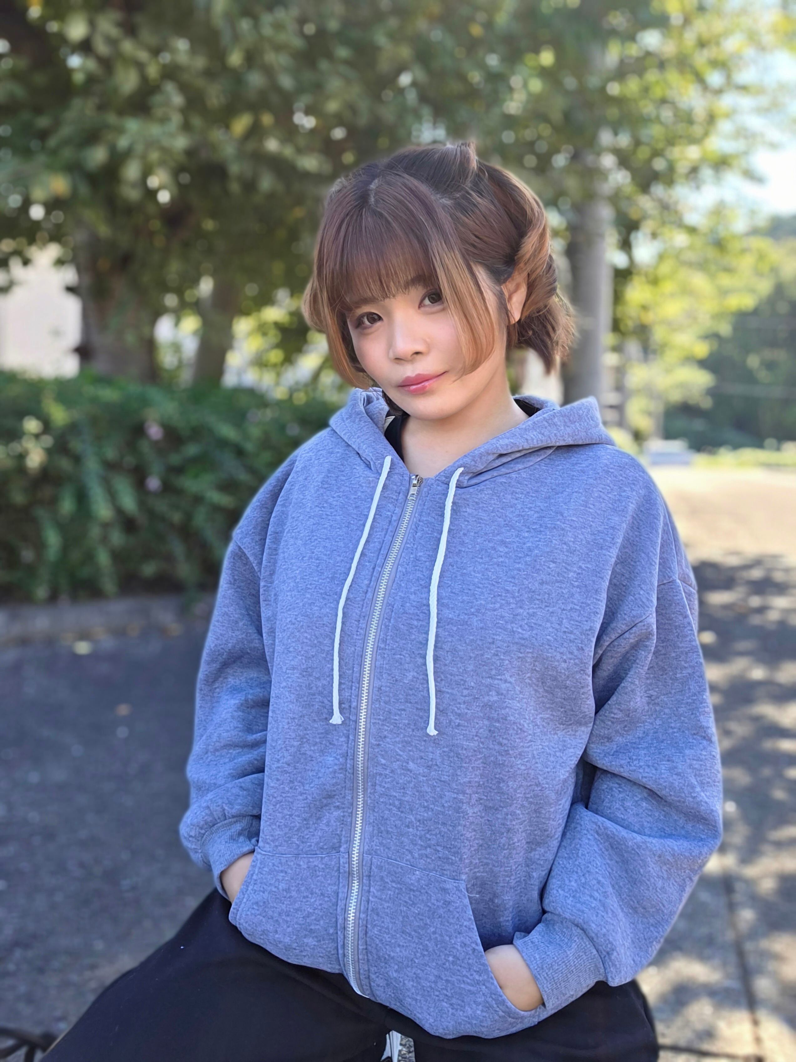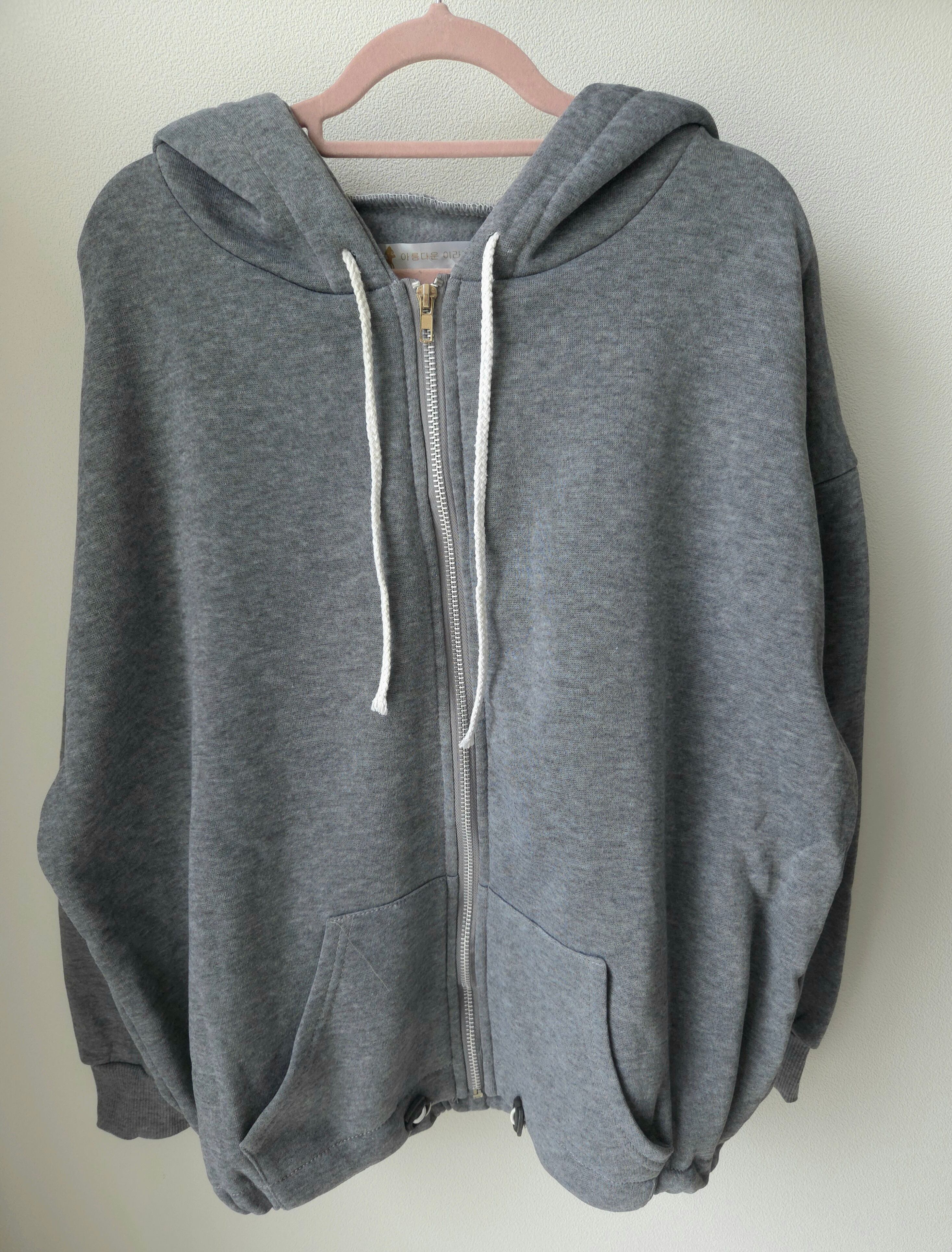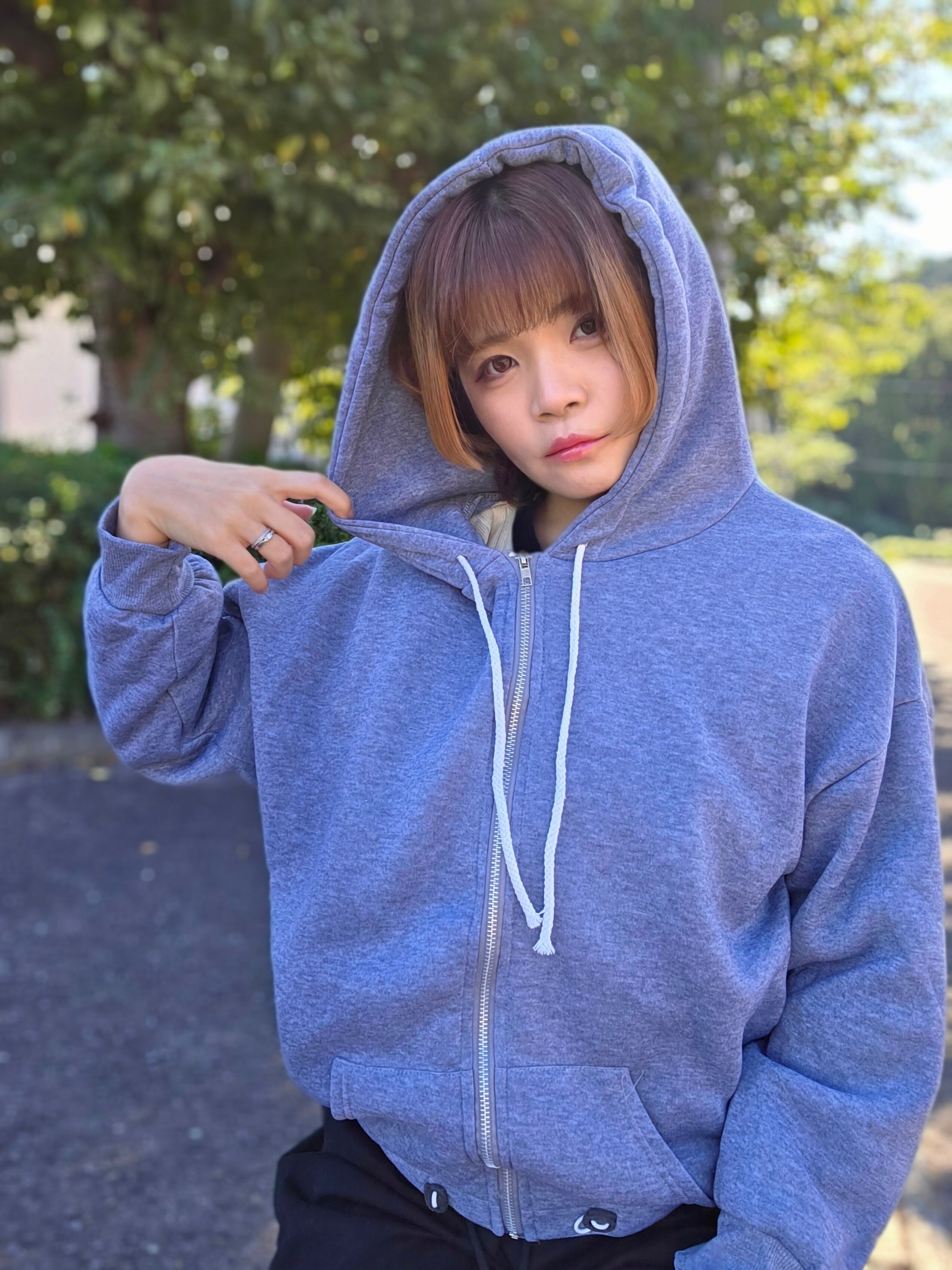 <ゆったりとしたシルエットが特徴のジップアップパーカー♡軽やかな素材感が心地よく、毎日のカジュアルスタイルにぴったりのアイテム!どんなコーディネートにもマッチし、心地良い着心地が嬉しい✨>