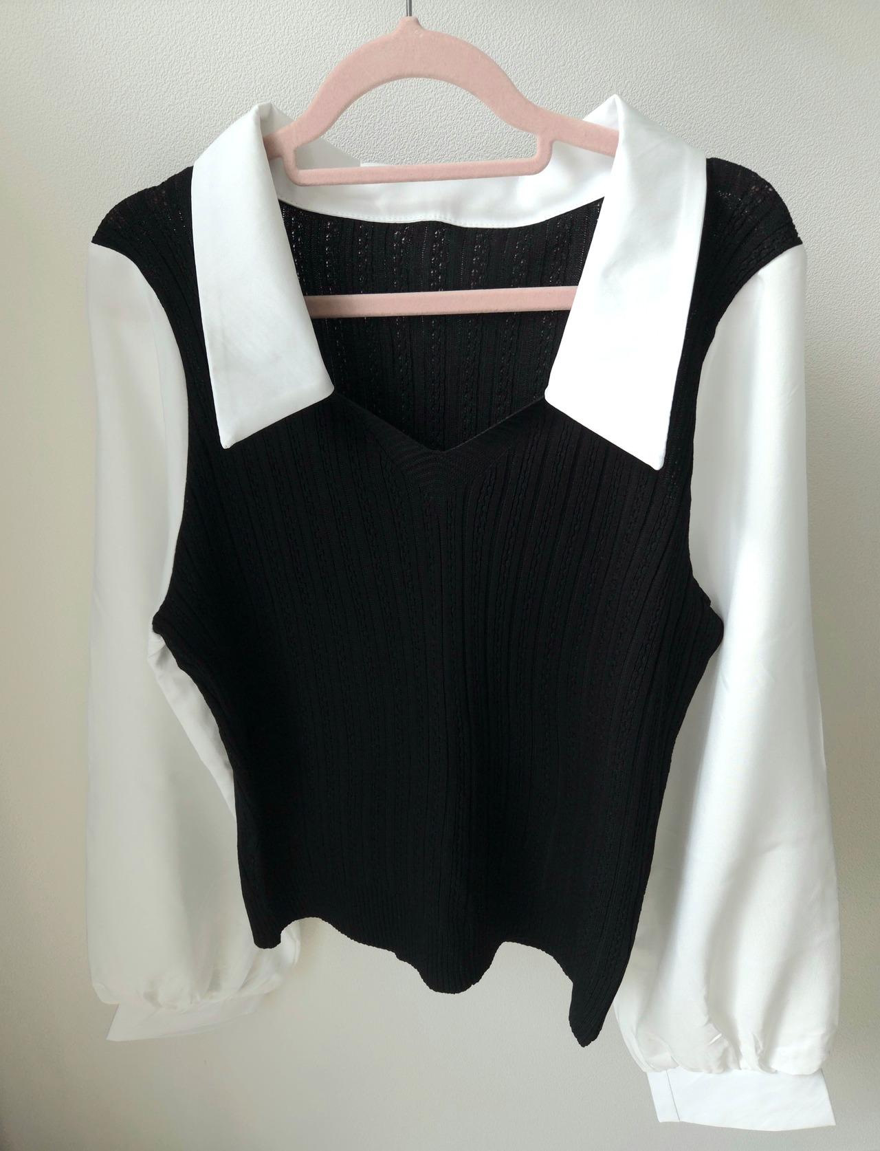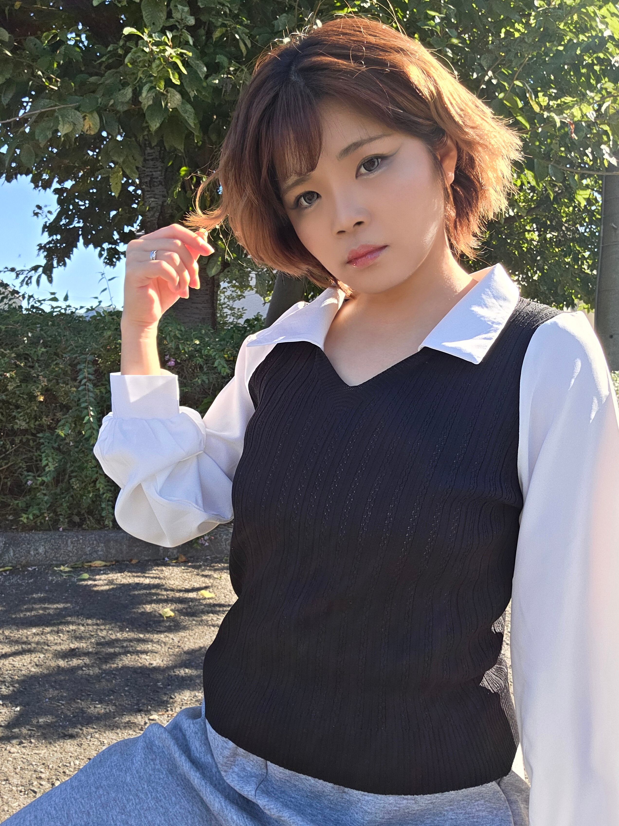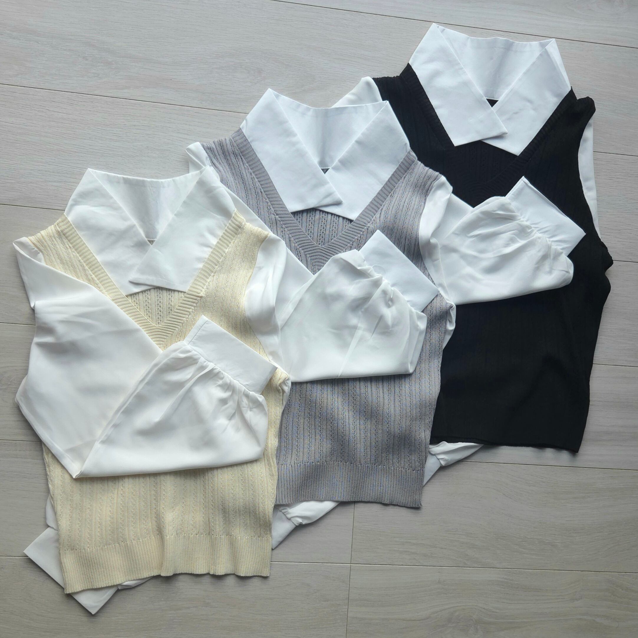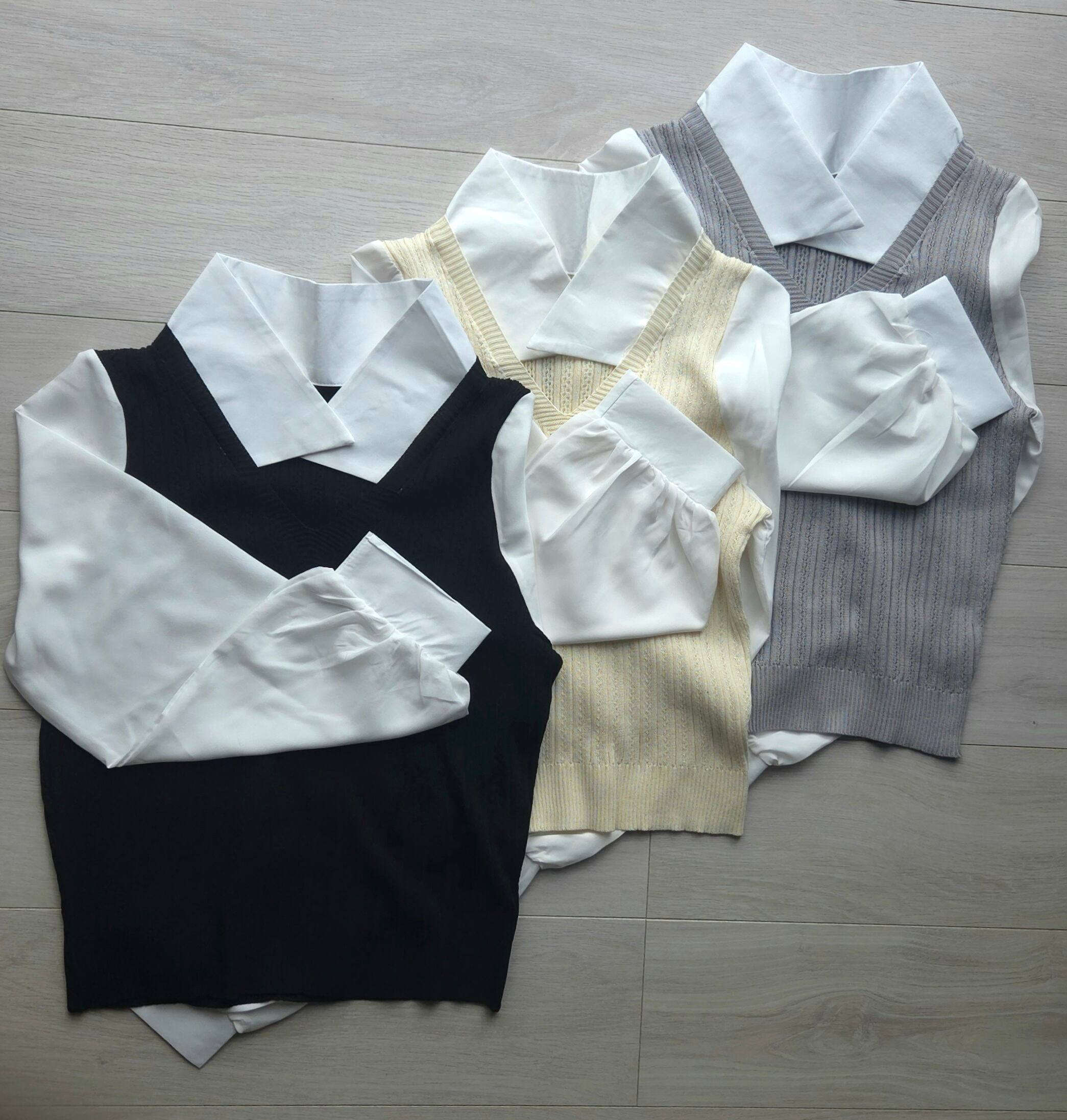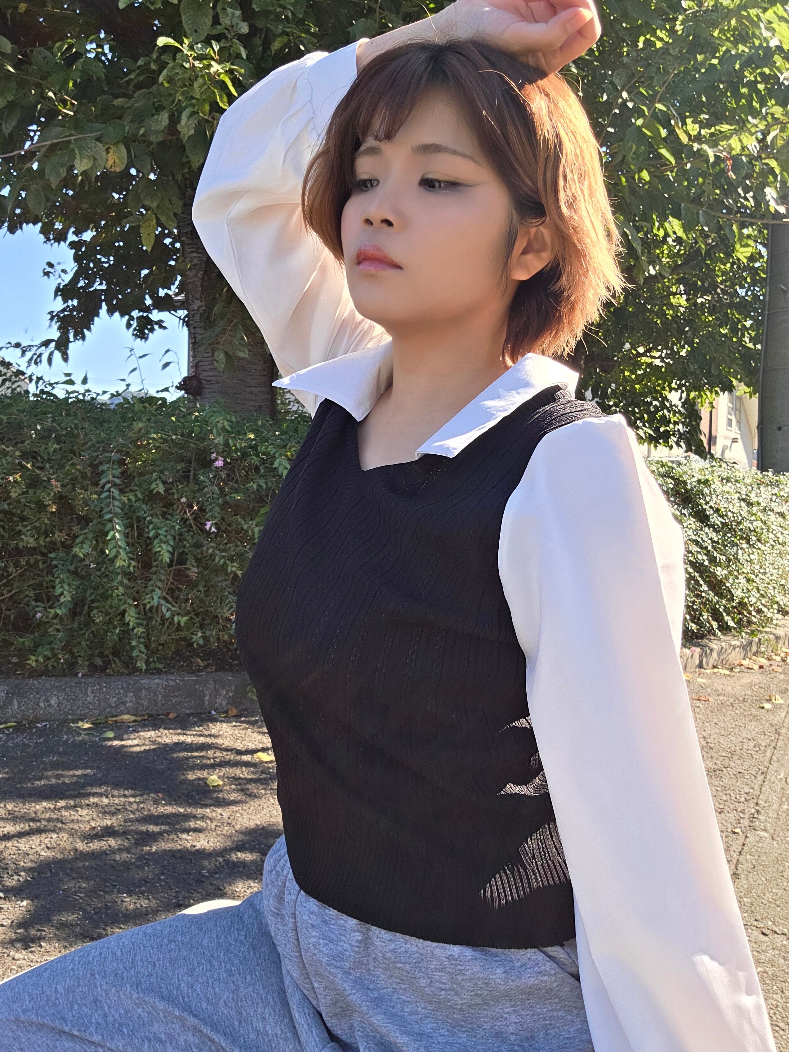 <軽やかな素材感と重ね着風デザインが特徴のシャツニット♡心地よい着心地で、コーディネートに新たなアクセントを加えるのにぴったりのアイテム!ナチュラルな印象を与え、スタイリングの幅を広げてくれます✨>