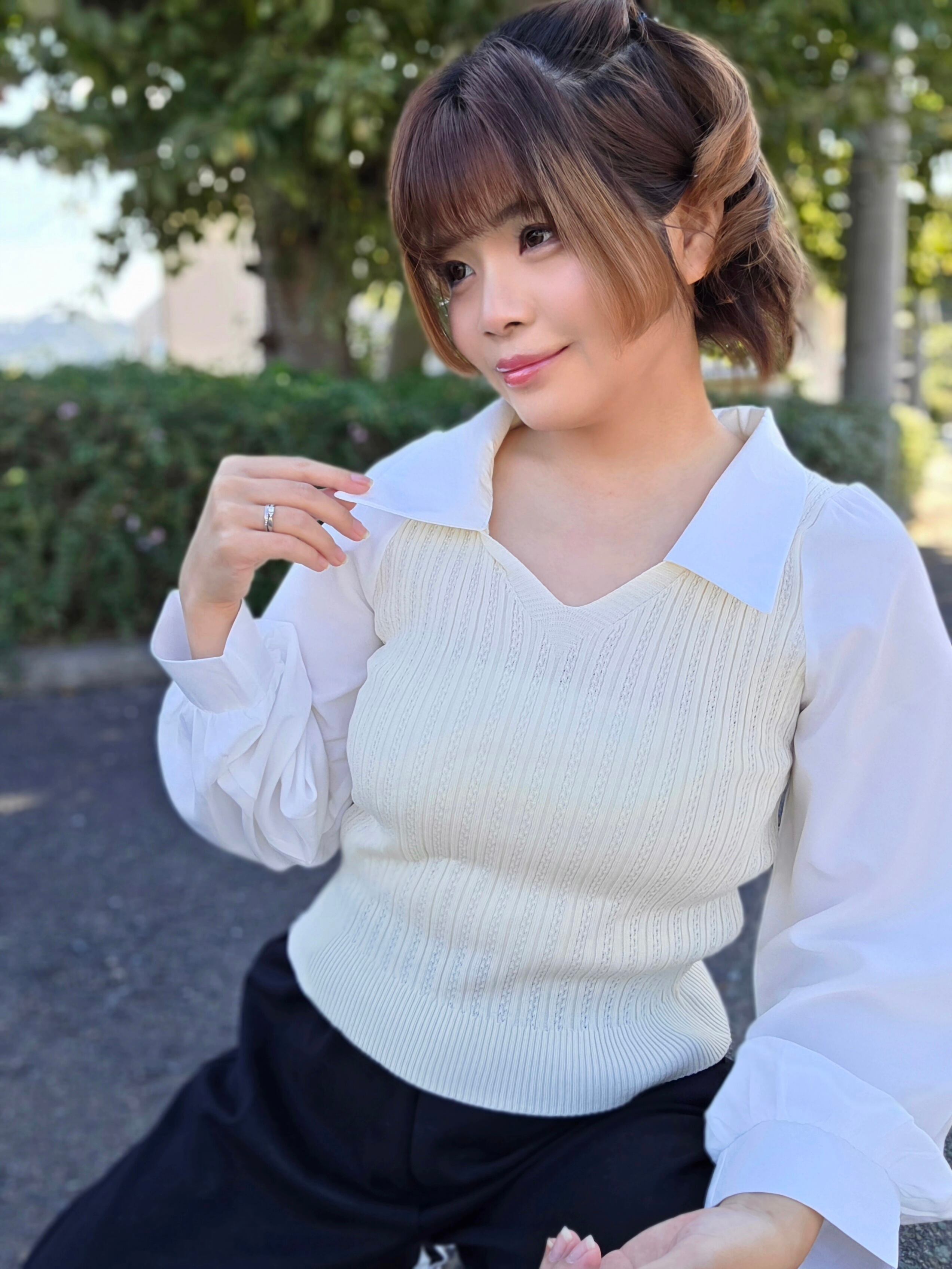 «重ね着風シャツニットで楽しむおしゃれなレイヤードスタイル»