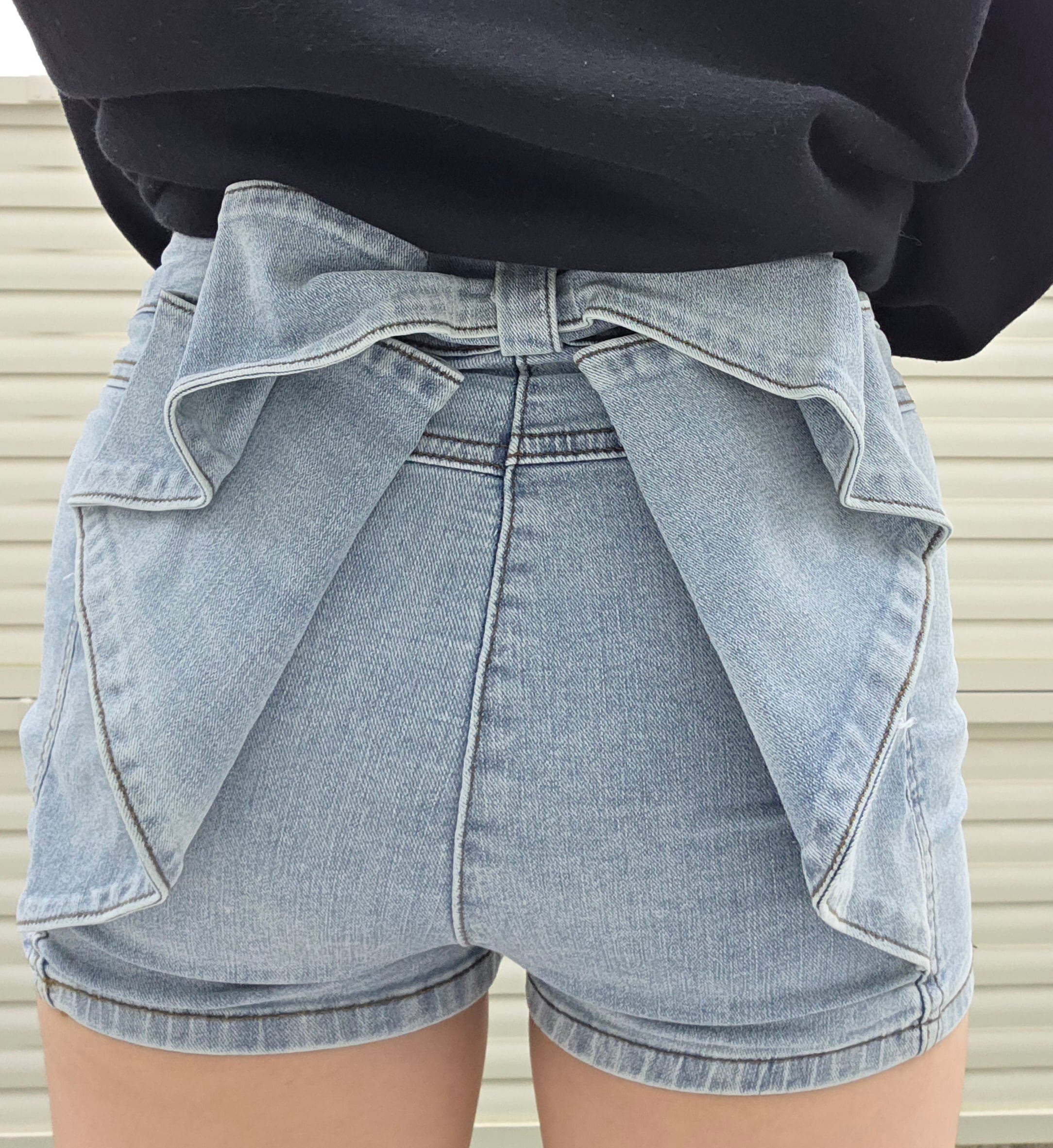 «バックリボンショートデニムで楽しむかわいさ満点のスタイル»