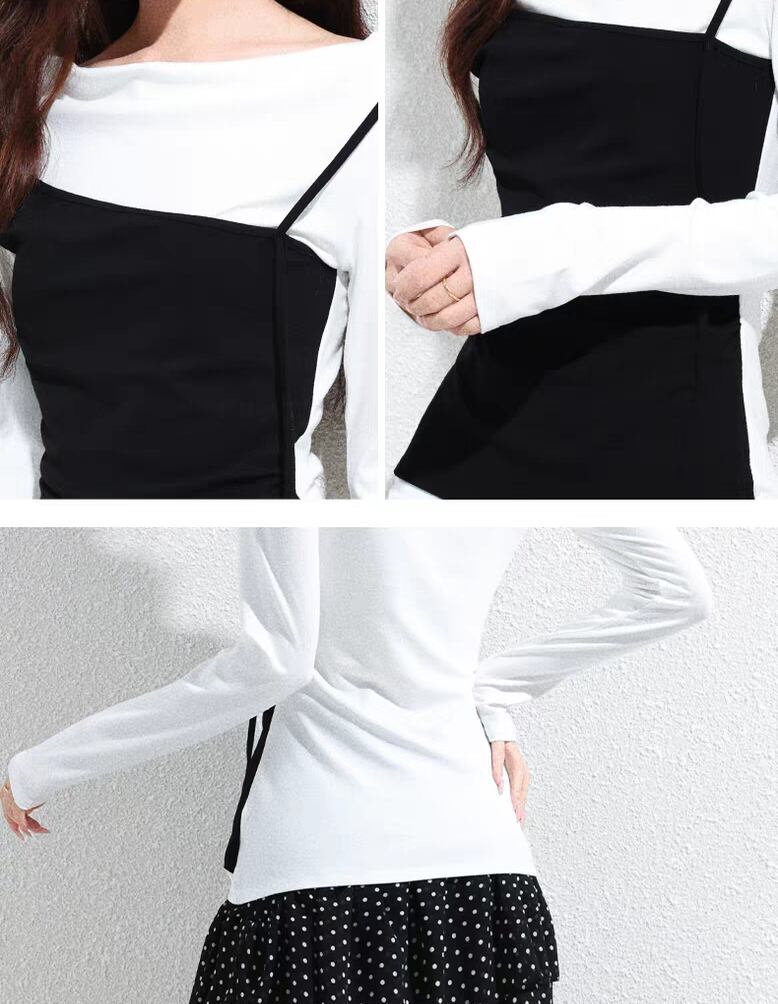 <フェイクキャミデザインが特徴のTシャツ♡軽やかな生地感で、カジュアルさと女性らしさを兼ね備えたアイテムです!シンプルながらもおしゃれに見せることができる、一着は持っておきたいアイテムです✨>