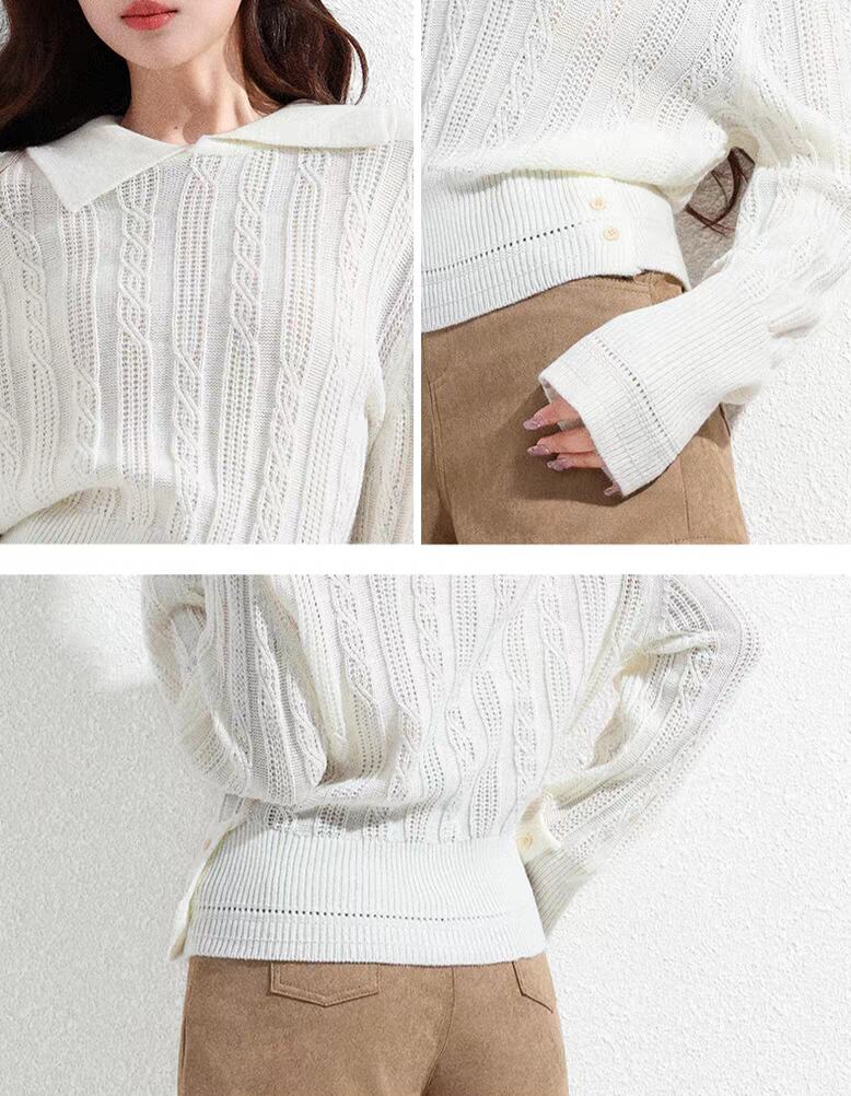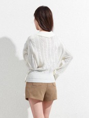<ケーブル編みが特徴のホワイトセーター♡ふんわりとした素材感が、優しい印象を与えるアイテムです!シンプルながらも温かみのあるデザインで、カジュアルからきれいめコーディネートまで幅広く活躍する一着です✨>