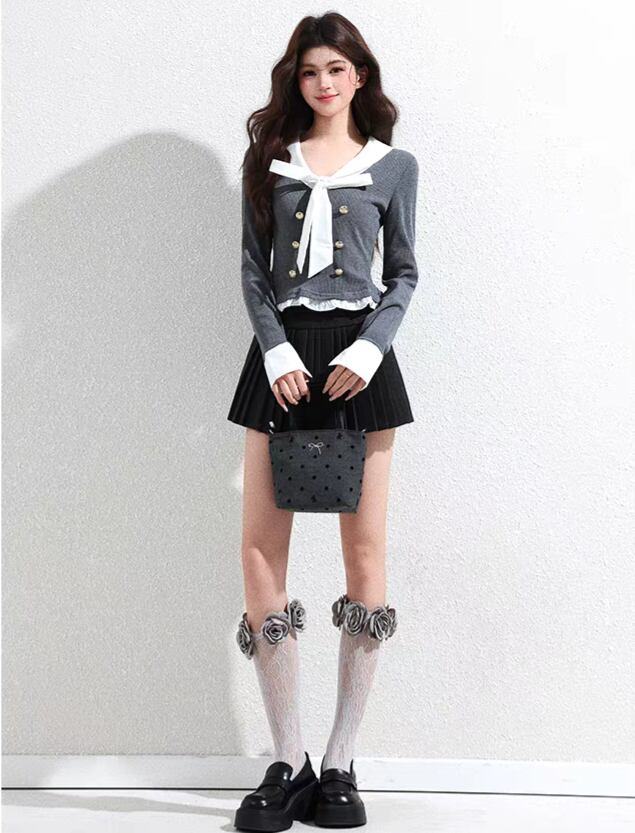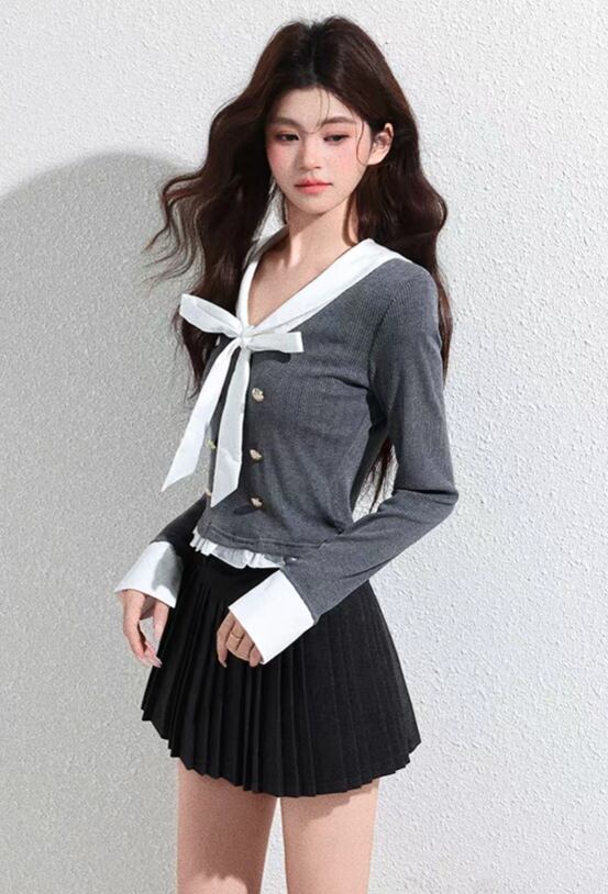 ①プリーツスカートと合わせると韓国風学生コーデを演出◎