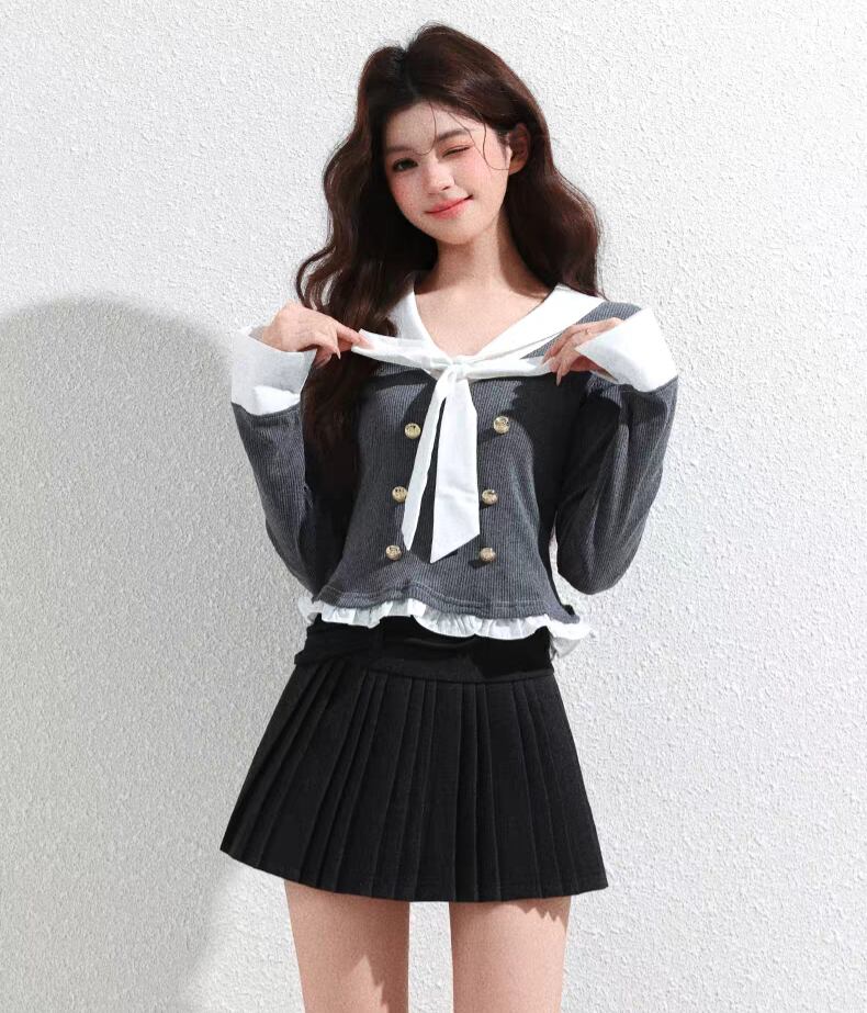 <セーラー襟デザインが特徴のニット♡新しい重ね着スタイルを楽しむことができる、柔らかな素材感が魅力的なアイテムです!シンプルながらもカジュアルさの中に上品さを兼ね備えた一着で、様々なシーンで活躍します✨>