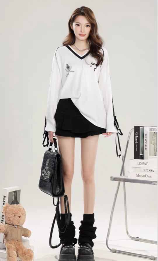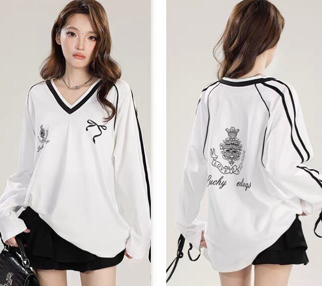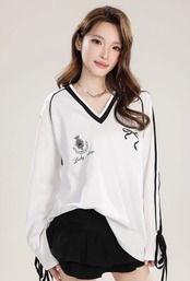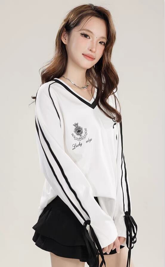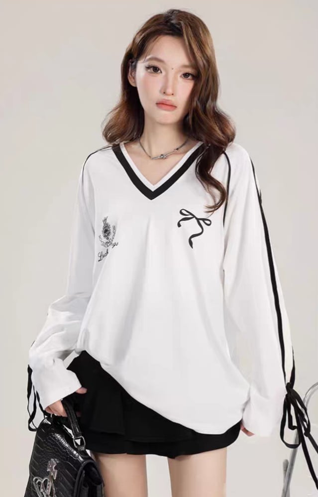 <柔らかなコットン素材が特徴のアメリカンリボンTシャツ♡ゆったりとしたシルエットが心地よく、カジュアルでありながらも洗練された印象を与えるアイテムです!デイリーコーディネートからお出かけまで幅広く活躍します✨>