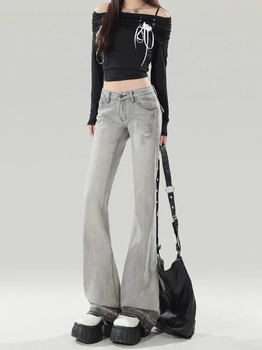 <美しい刺繍デザインが施されたジーンズ♡しっかりとした素材感とリラックスしたシルエットが魅力的で、カジュアルな日常コーデから特別なお出かけまで幅広く活躍します✨>